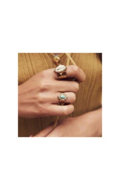 Cet hiver, vous allez raffoler de cette petite merveille précieuse! Cette bague en laiton argenté plaqué au palladium, 0,3 microns, à la particularité d’être amovible et s’adapte à toutes les tailles. Elle est décorée de petites billes argentées et de palmettes centrales qui rappellent les bijoux anciens de l’époque italienne. Elle est décorée de points d’émail turquoise et pavée de strass de couleur turquoise, blanc effet diamant et violet améthyste.