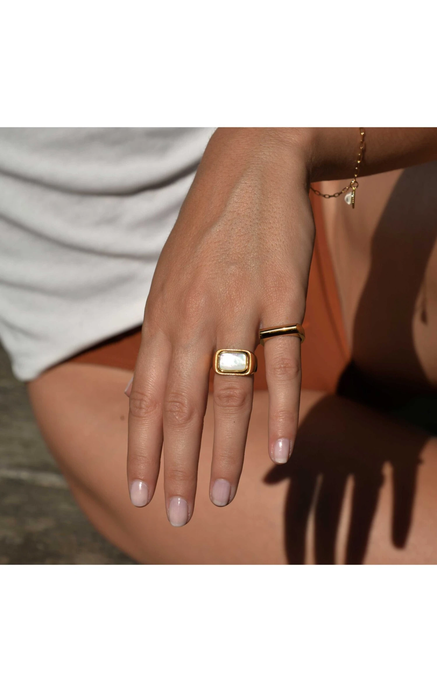 Vous allez adorer cette bague en forme de chevalière avec son cabochon en nacre. Son côté classique est contre-balancé par sa forme masculine. En acier chirurgical elle pourra traverser le temps sans qu’elle ne se ternisse.