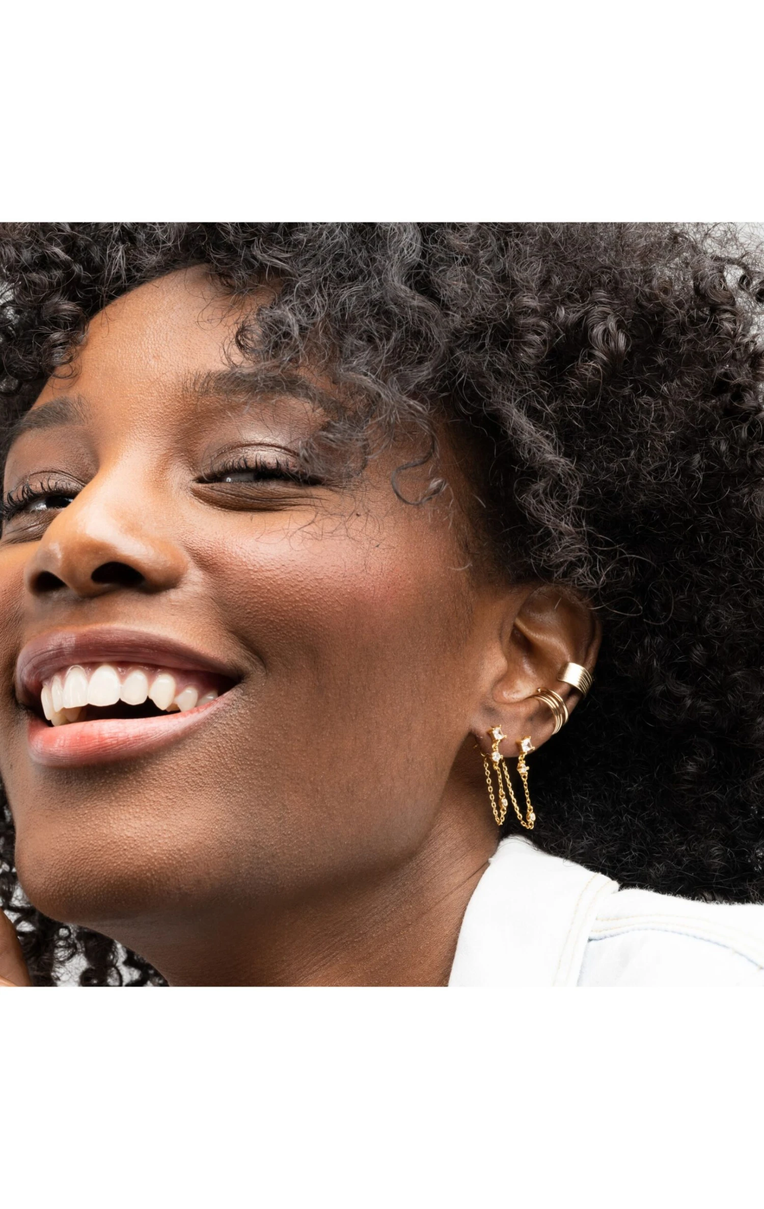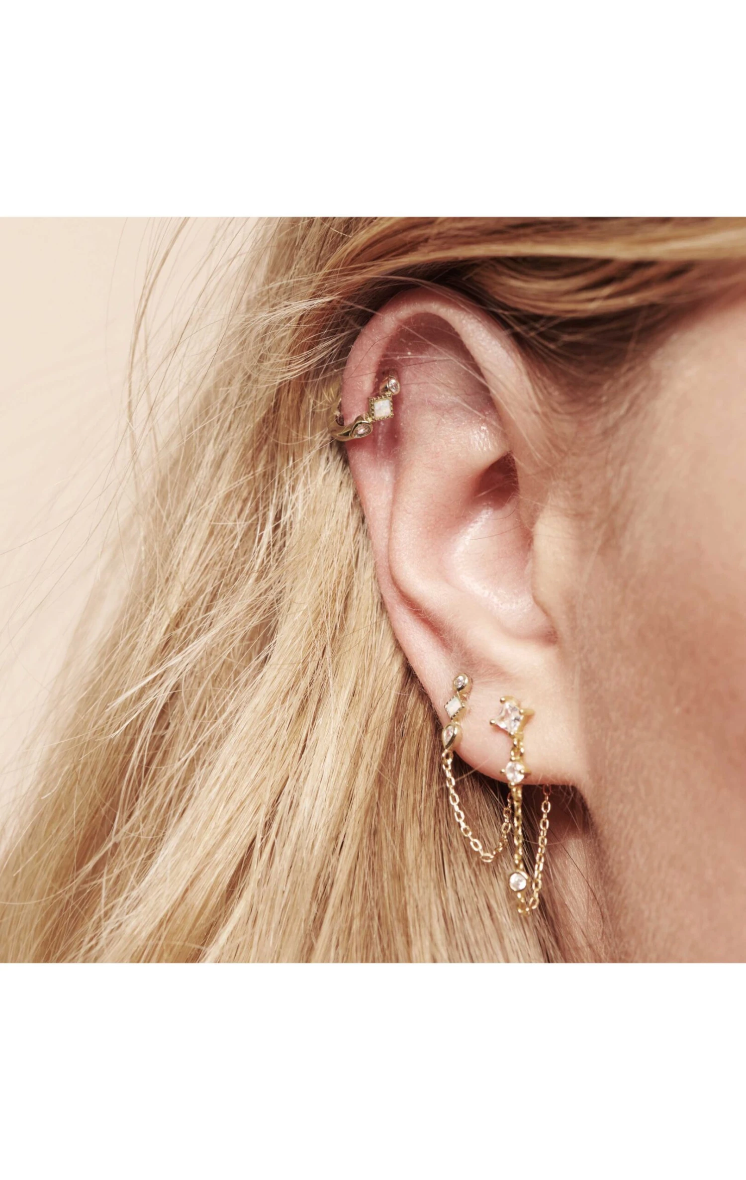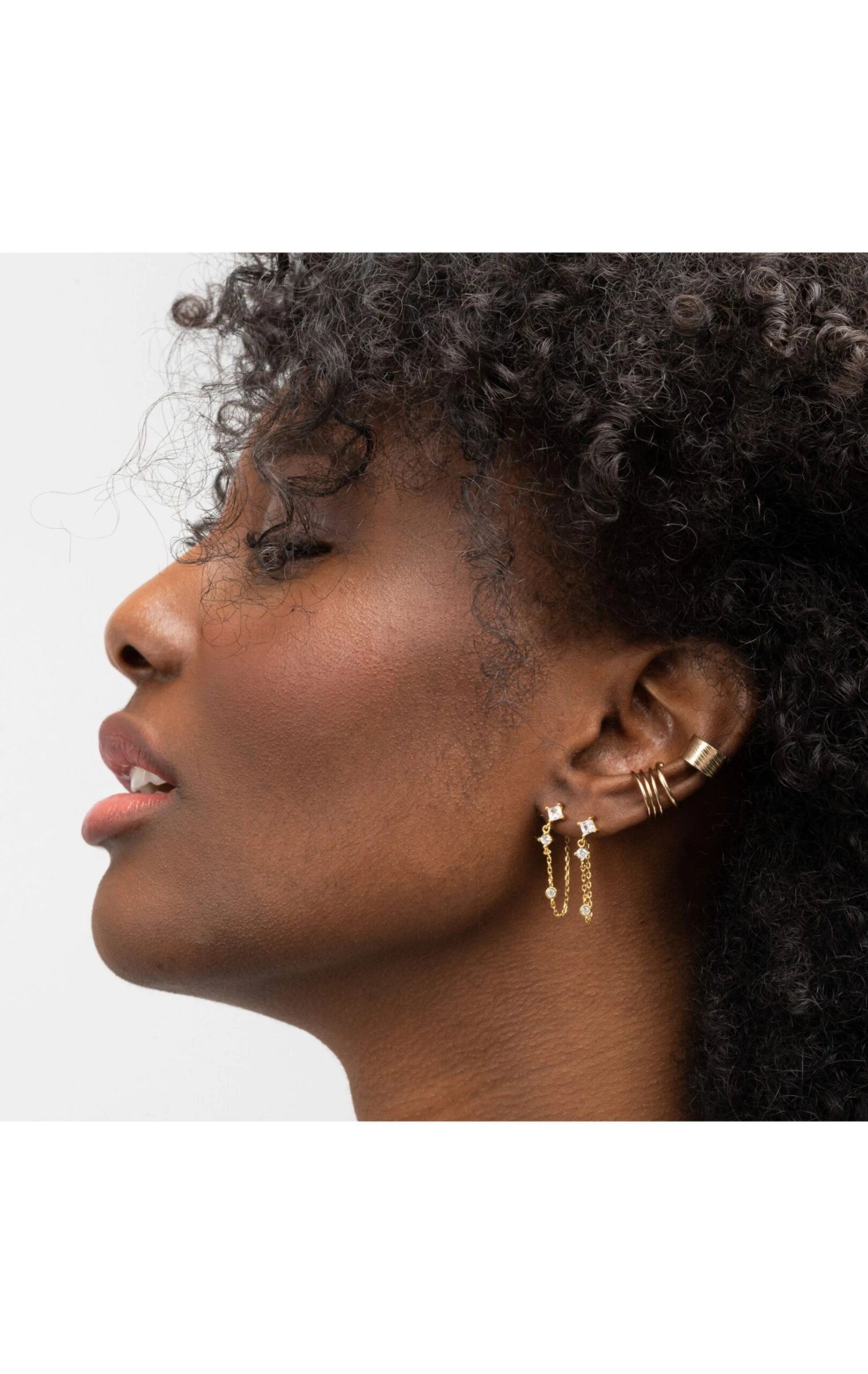 Boucles d’oreilles ornées de deux strass en losange effet diamant,et d’une forçat qui relie la boucle au fermoir se positionnant à l’arrière du lobe pour un effet rock et élégant à la fois. Doré à l’or fin 18 carats sur de argent 925 véritable, ce bijou en vermeil vous est garanti sans risque d’allergie.
