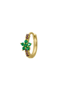 Boucles d’oreilles dorées à l’or fin 14 carats, avec une tige pour oreilles percées. L’élément central est composé d’un strass cossu effet diamant et entouré de quatre petits strass assortis. Un pendentif goutte smocky ajoute une touche de fantaisie à sa composition. Vestiaire très estival et festival, à assortir, à accumuler, pour des boucles d’oreilles à porter seules ou accompagnées. Ce bijou est fait à la main.