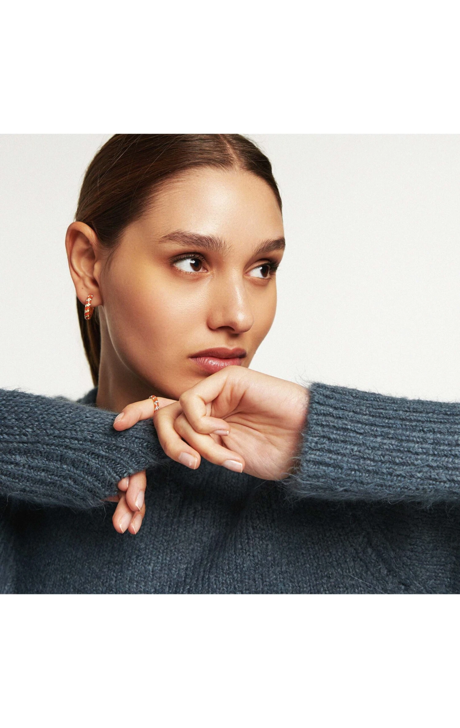 Cet hiver, vous allez succomber pour ces petits bonbons colorés et adorerez les accumuler selon votre humeur! Ces petites créoles dorées à l’or fin 14 carats sont entièrement pavées de strass effet diamant combinés en torsade avec de l’émail rouge orangé. On est fan de leur look classique chic que l’on peut twister facilement en les associant aux autres couleurs. Une pièce immanquable pour cette saison.