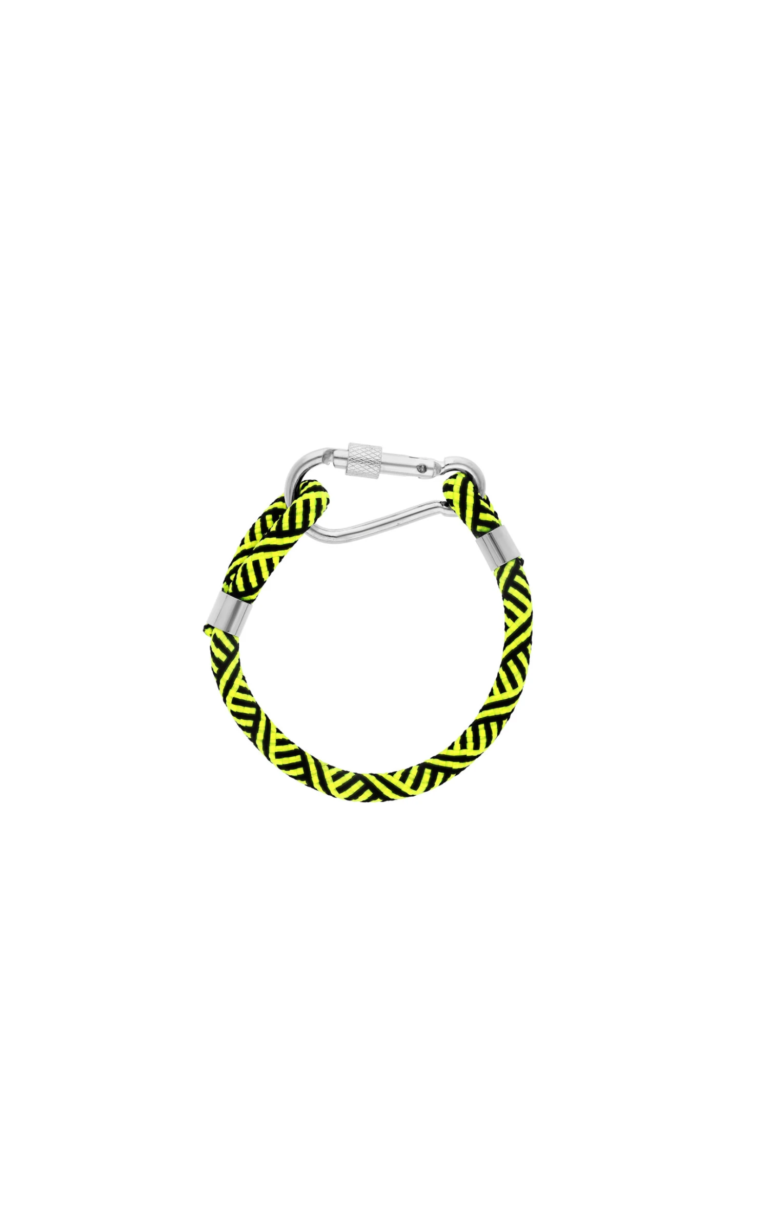 Bracelet homme composé d’une corde noir et jaune fluo qui se ferme avec un fermoir mousqueton argenté.