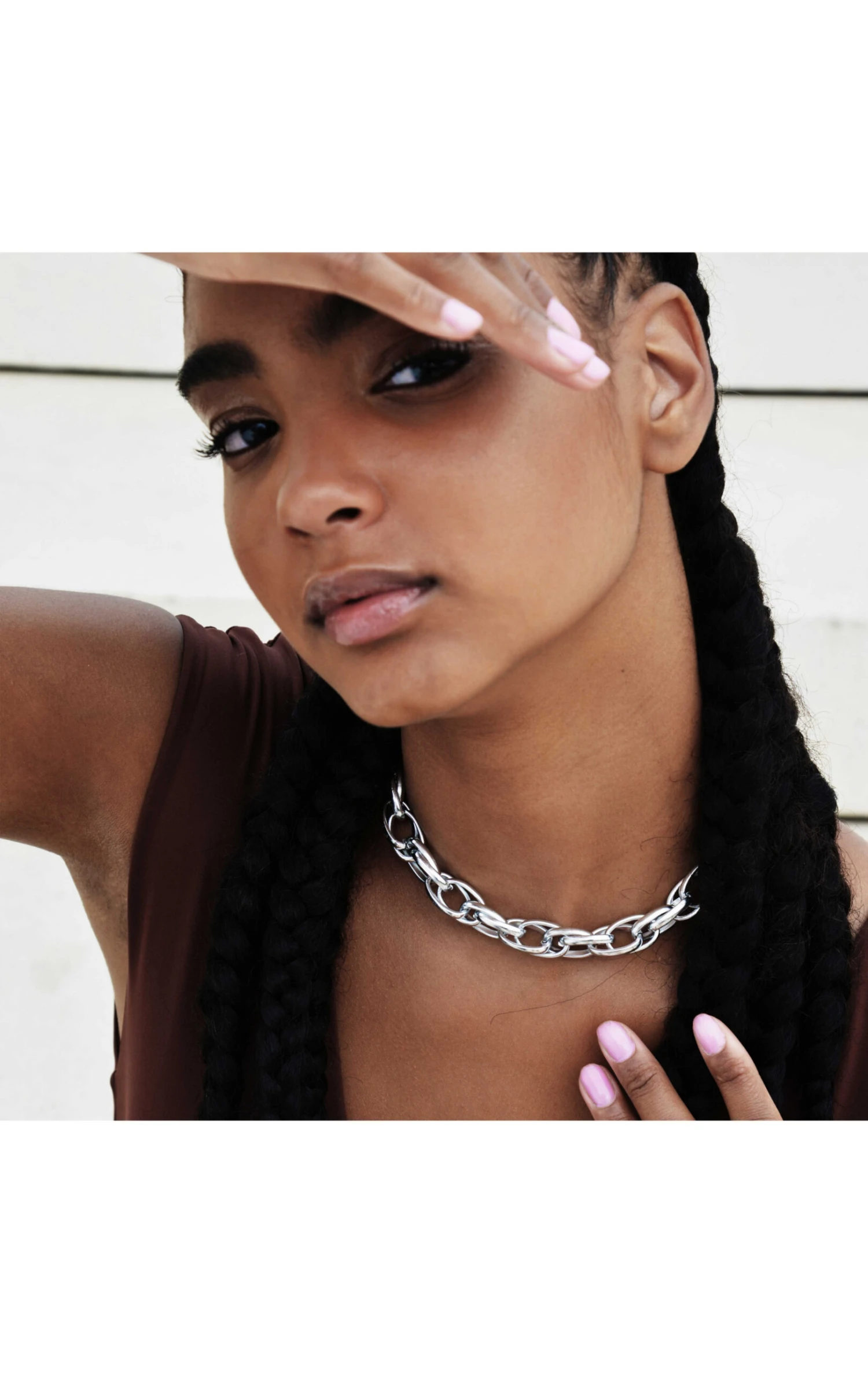 Les chaînes seront votre alliée de la saison alors vous aussi adoptez ce collier ras du cou argenté aux maillons larges arrondis. Vous pourrez le portez aussi bien sur un décolleté que sur une maille fine afin de mettre en valeur un look minimaliste de rigueur pour la saison.