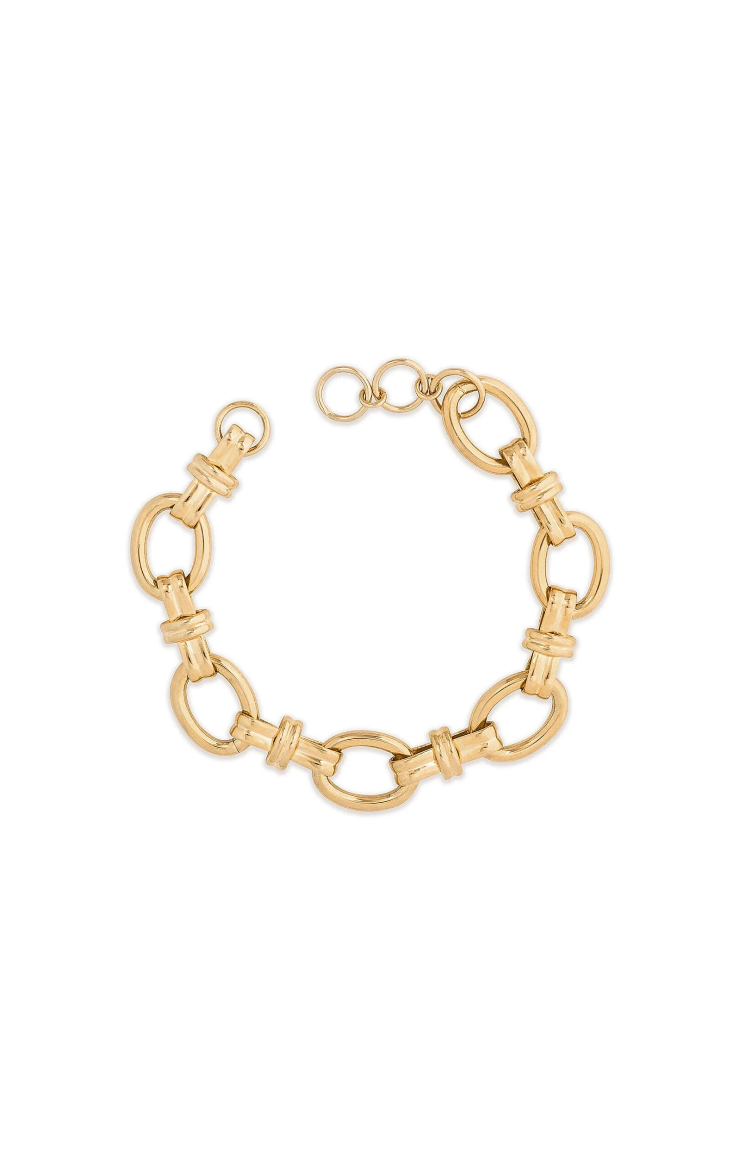 Les bracelets « CLARE » sont les liens en chaîne. Ici vous est présenté une chaîne fantaisie épaisse de maille ovale rattachée avec double papillon, dorée à l’or fin 14 carats.
