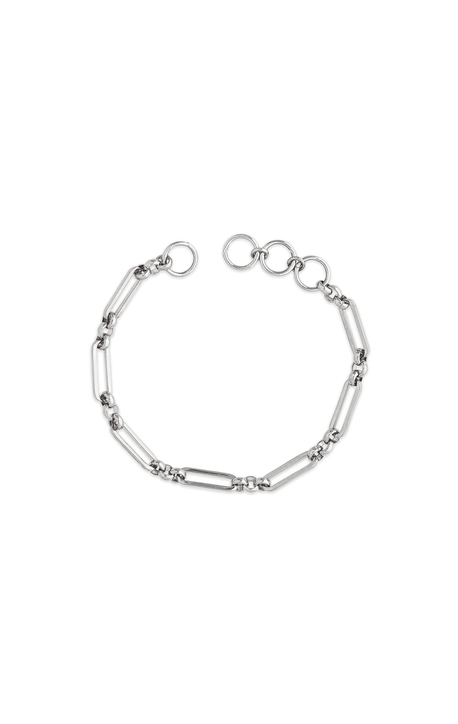 Les bracelets « LEE » sont les liens en chaîne. Ici vous est présenté une chaîne fine de maille rectangulaire régulière ouvragée, argentée au rhodium.