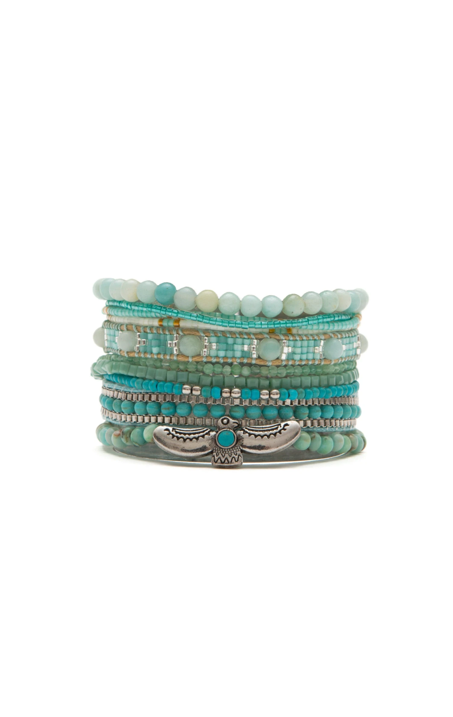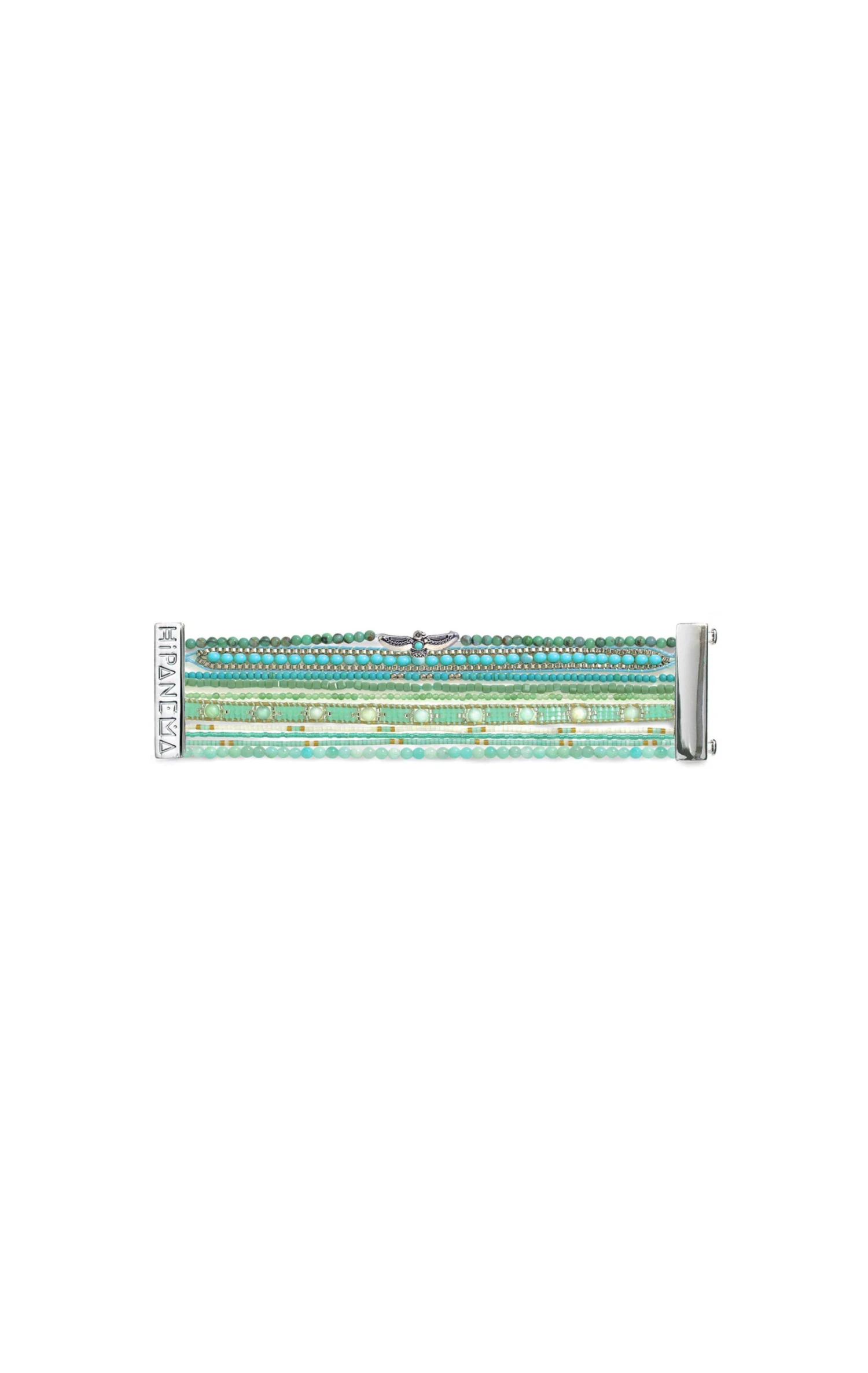 Pièce unique faite à la main, AQUA est composée d’une multitude de liens de couleur bleue. Chaque lien est relié par un fermoir argenté sur lequel est gravé Hipanema.